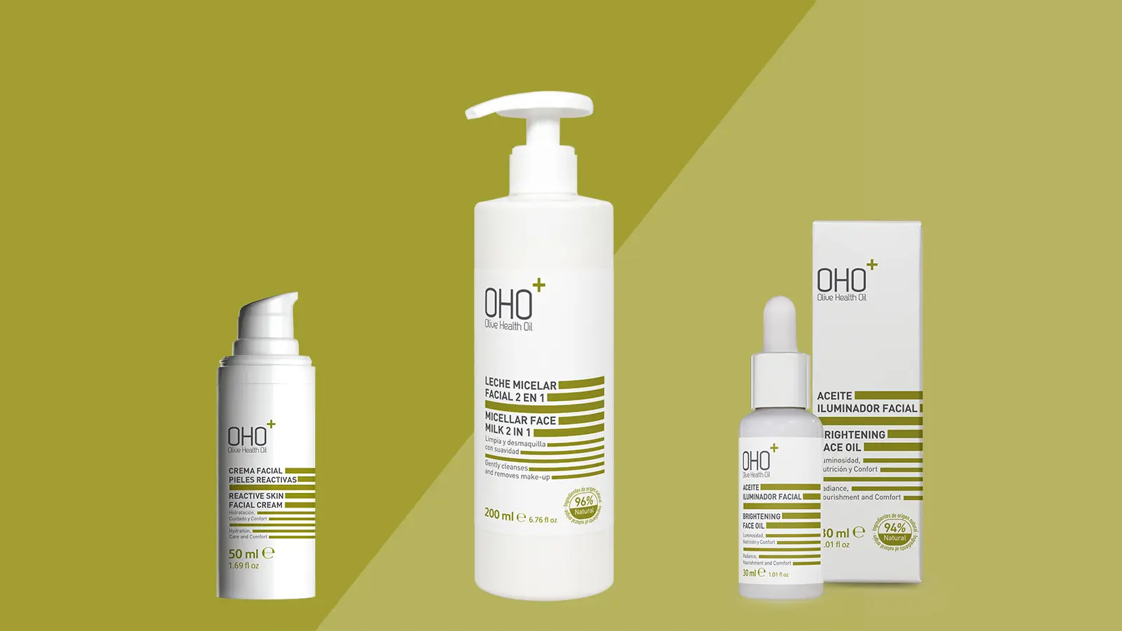Cosméticos basados en la experiencia médica elaborados con Aceite de Oliva Virgen Extra 100% orgánico El Aceite de Oliva Virgen Extra 100% orgánico, exclusivo de OHO+, es rico en ácidos grasos (omega 3, 6, 7 y 9), vitamina E, polifenoles antioxidantes y sustancias antiinflamatorias. Estas sustancias, propias del aceite, le confieren su acción biológica. Es...